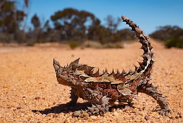 Tiene un aspecto terrible, «pero no haría daño a una mosca», dice Henderson. Este lagartito cabe en la palma de la mano, vive en Australia y está lleno de espinas, lo que le permite defenderse de los depredadores, lo mismo que una 'cabeza falsa' que saca de entre sus piernas cuando se ve amenazado para 'ofrecerla' al enemigo. En caso de perderla, no sufre grandes daños, ya que le vuelve a crecer. Además, este diablillo también puede hincharse para hacerse difícil de tragar, así que se las sabe todas para sobrevivir.