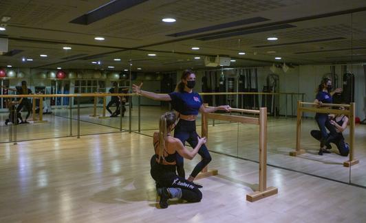 La bailarina Gloria Morales corrige la postura de la periodista Elena Martín durante una sesión de Ballet Fit. Virginia Carrasco
