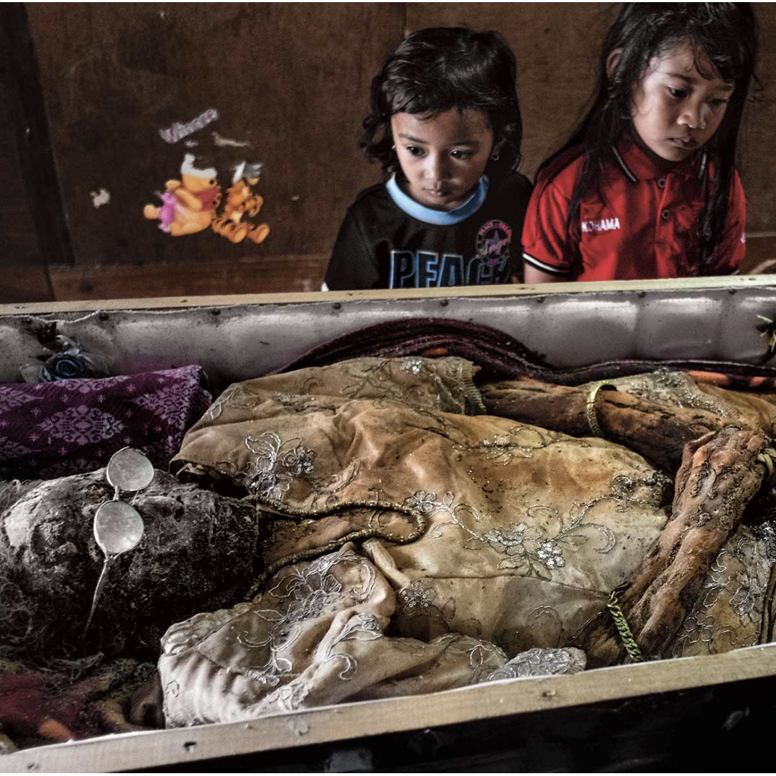 La línea entre la vida y la muerte es difusa para los torajas, una etnia indonesia que vive en la remota isla de Cébeles. Durante meses, incluso años, los familiares permanecen momificados en las casas.