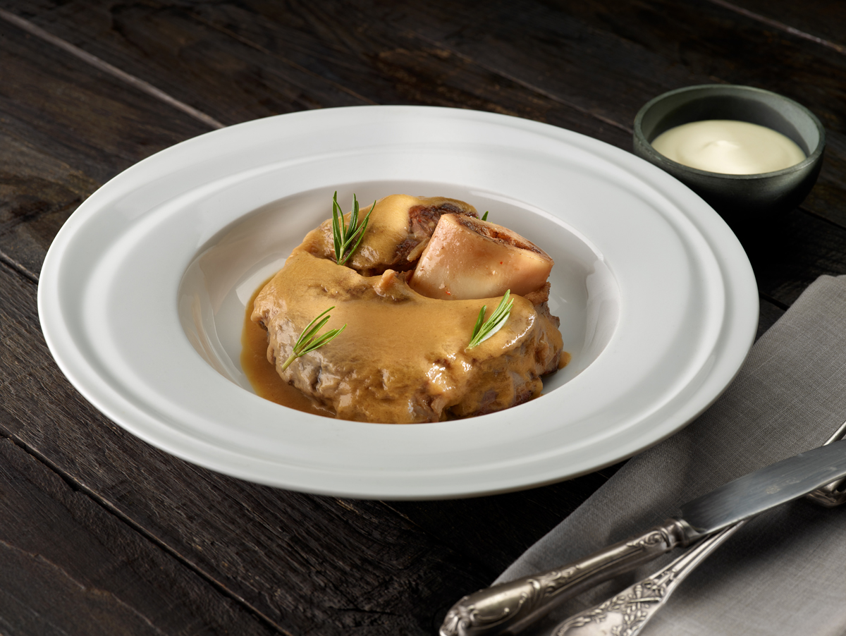 Se devuelve el osobuco a la salsa, se hierve suavemente 10 minutos, hasta que brille de aspecto, y se sirve con el puré. ¡Y listo! Ya tenemos nuestra receta de osobuco en su jugo con puré terminada.