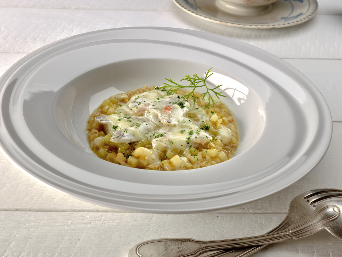 ¡Y listo! Ya está la receta de risotto de patata con cocochas terminada.