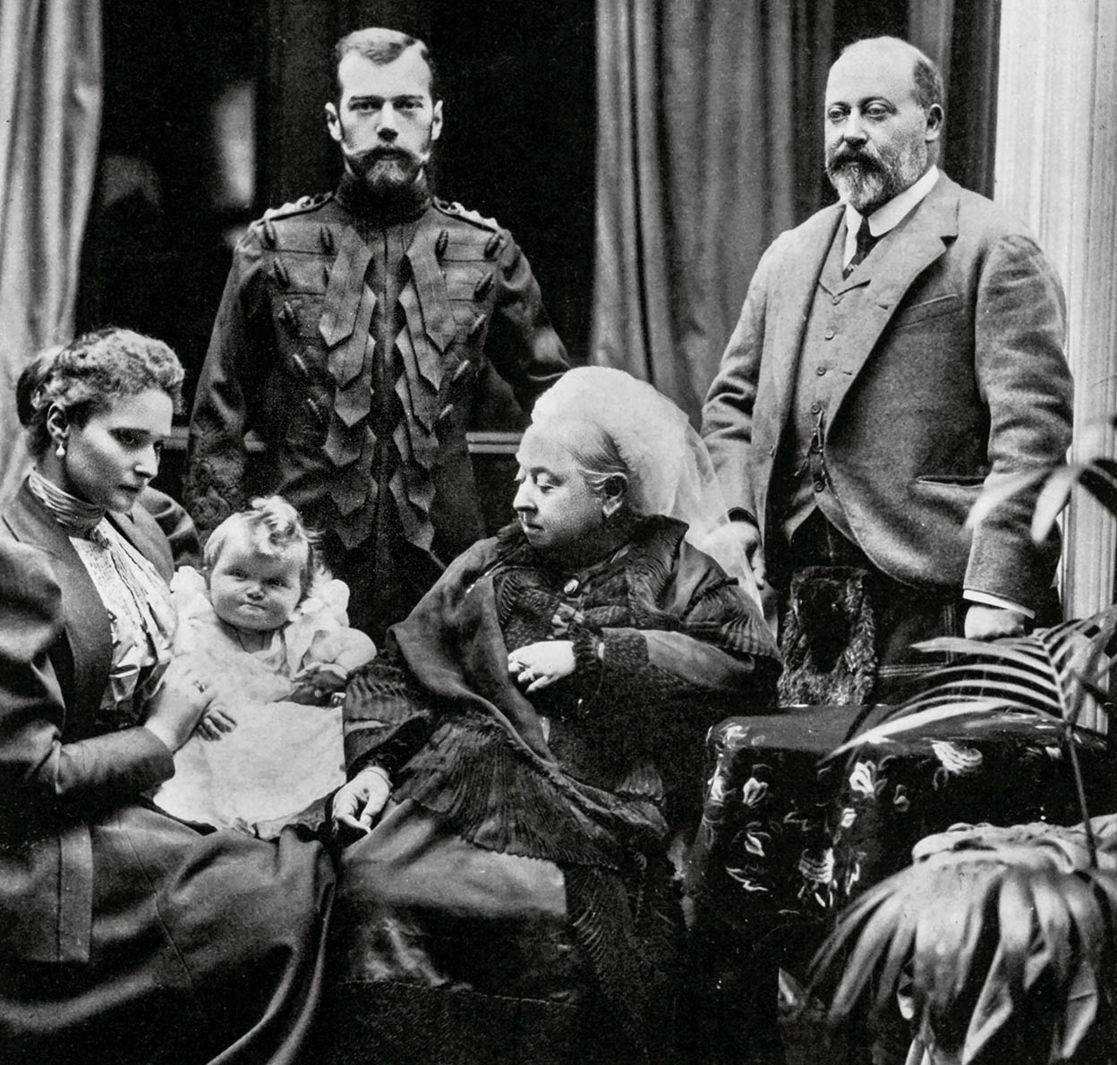 La reina Victoria expandió la hemofilia.Sus hijas Beatriz y Alicia transmitieron la enfermedad a otras casas reales. Eduardo VII no la heredó, así que la familia real británica se libró de la hemofilia. Aquí, Victoria con su nieta Alejandra y su marido, el zar Nicolás, padres de Alekséi, que era hemofílico.Cordon.