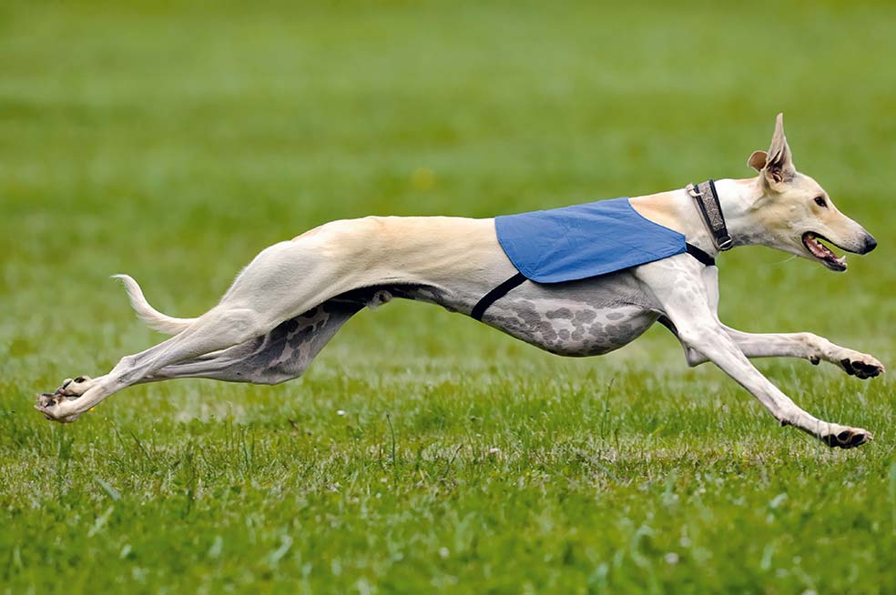 Patas largas, peso ligero y gran elasticidad. Cuando un galgo corre, puede llegar a los 70 kilómetros por hora. Durante la carrera, el 75 por ciento del tiempo lo pasa en el aire.