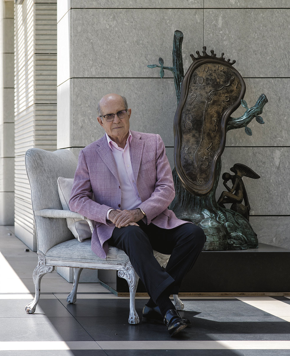 Nos recibe en su casa de la exclusiva urbanización madrileña La Finca. Una residencia-museo donde enormes esculturas de Dalí conviven con cuadros de Jeff Koons, Alex Katz y los españoles Manolo Valdés, Julio Romero de Torres o José María Sicilia.