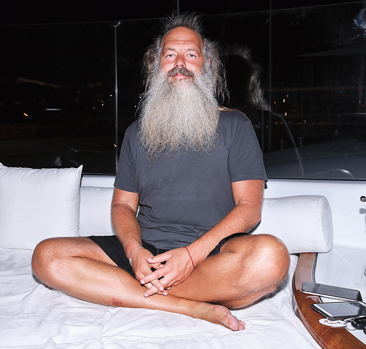 Acaba de aprender una nueva técnica de natación. Dice que ha sido una de las cosas más difíciles que ha intentado en su vida, y eso que ha intentado unas cuantas, la mayoría de las cuales han dado pie a grandes éxitos. A saber: descubrir a los Beastie Boys, grabar a Johnny Cash, el bombazo de los Red Hot Chili Peppers, el renacimiento de Metallica... Pero reaprender a nadar, eso sí ha sido complicado, insiste Rubin. El gurú de las estrellas [en la imagen de apertura] nació en Nueva York, pero vive en Malibú (California) y tiene 60 años. Está casado con la modelo Mourielle Hurtado y tienen un hijo de 6 años al que han llamado Ra.